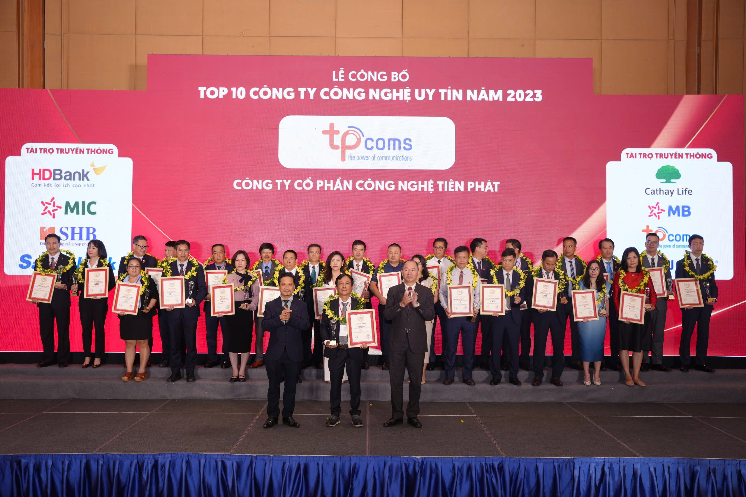 Ngày 12/06/2023, Công ty Cổ phần Báo cáo Đánh giá Việt Nam (Vietnam Report) công bố Top 10 Công ty Công nghệ thông tin – Viễn thông uy tín năm 2023, trong đó TPCOMS được vinh danh tại vị trí thứ 10 tại bảng xếp hạng.
