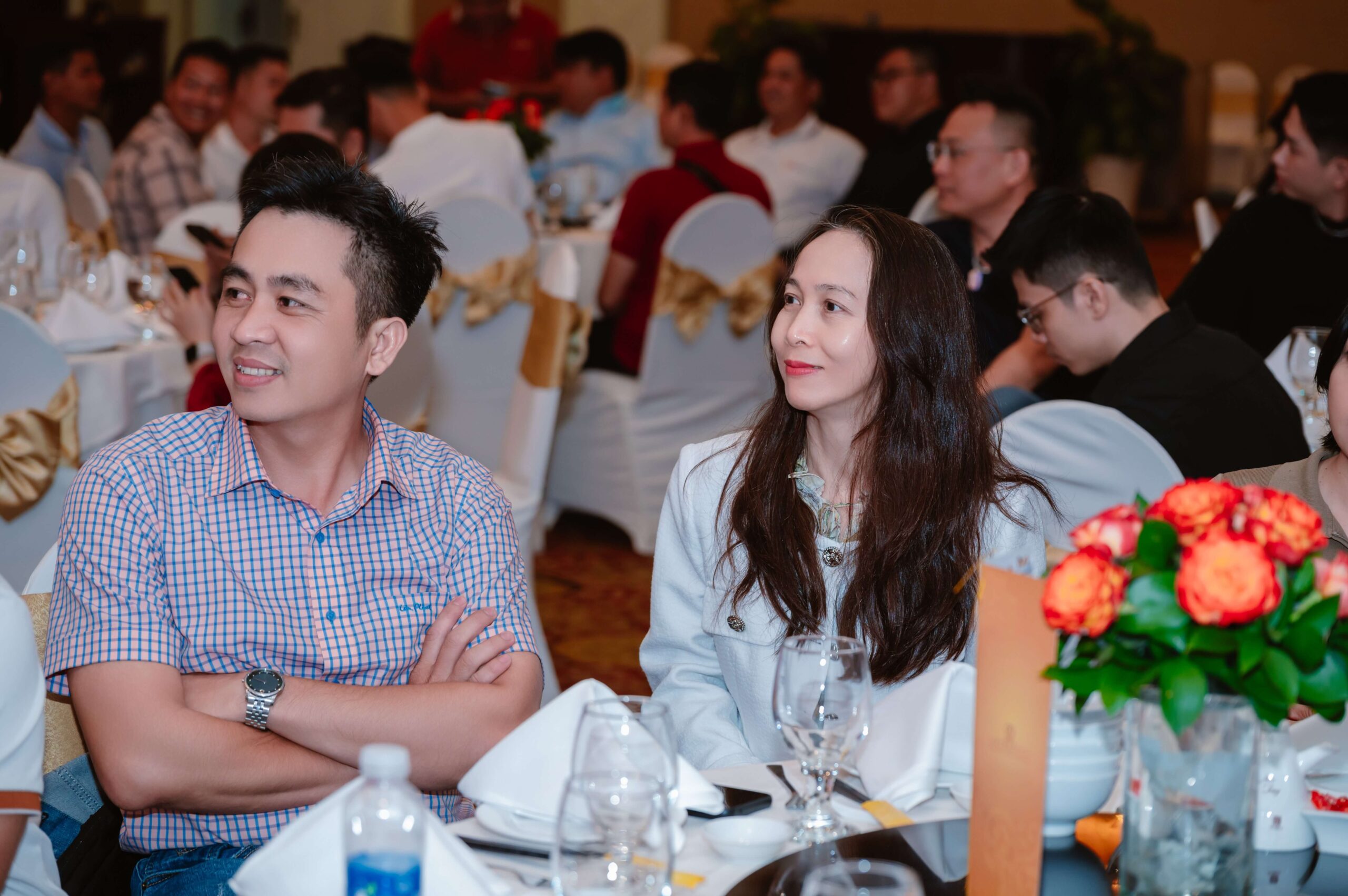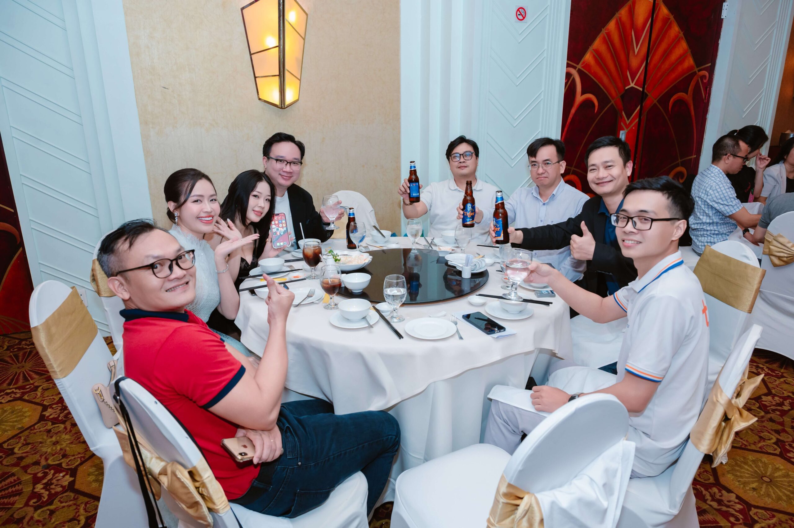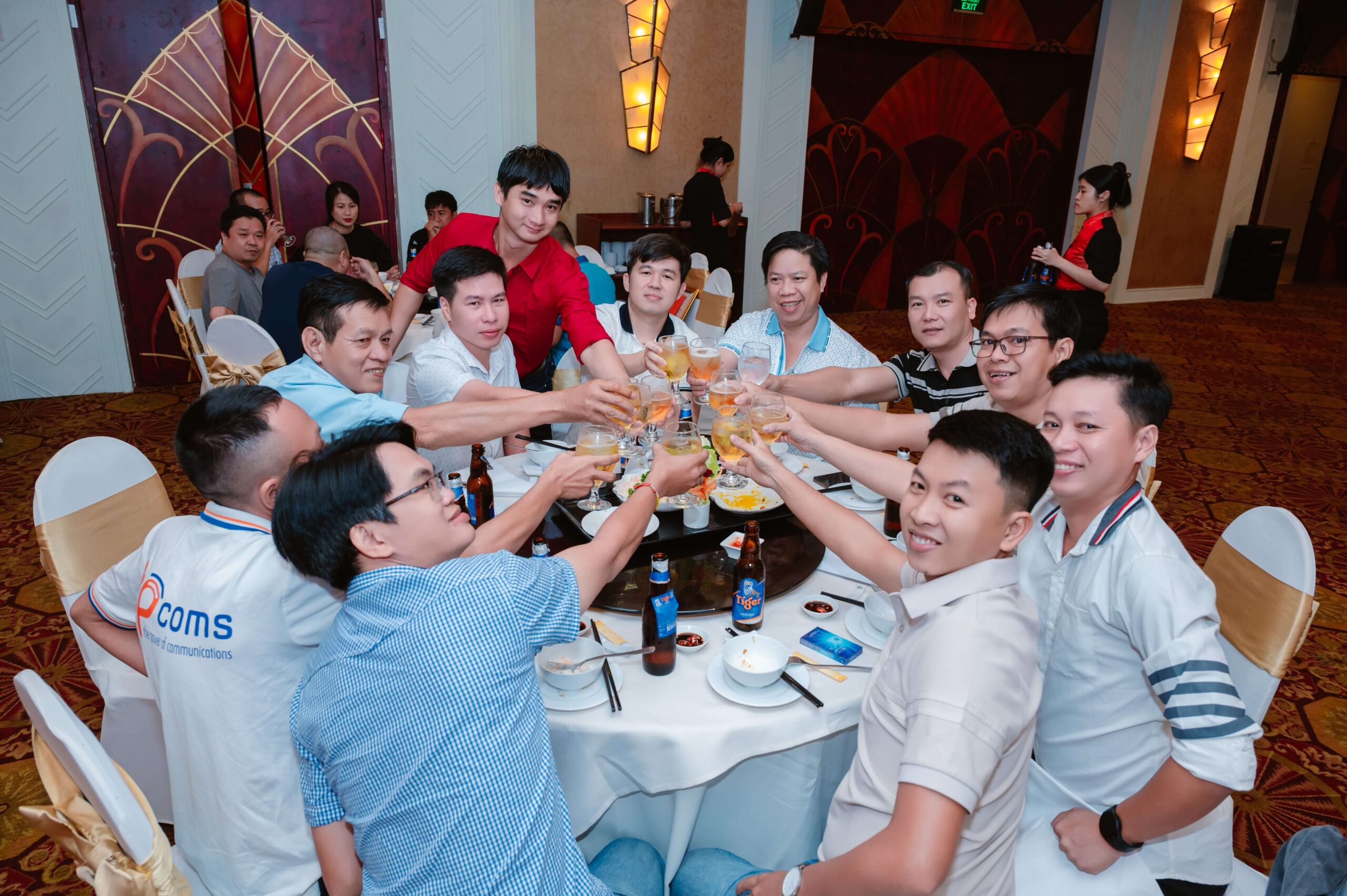 Sau phần vinh danh, Ban Lãnh Đạo thực hiện nghi thức khai tiệc trong sự hưởng ứng của toàn thể hội trường. Khoảnh khắc này thể hiện sự thống nhất về mục tiêu và tinh thần đồng hành giữa lãnh đạo và nhân viên, đánh dấu sự khởi đầu cho hành trình phát triển tiếp theo.